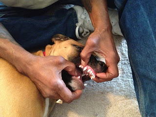 I always encourage clients to do everything the vet might do when they go for a visit (aside from drawing blood). These means you should practice things like touching your dog's paws and looking inside your dog's mouth and ears. Doing these types of things helps your dog learn to remain calm during a vet visit, but also reasserts your position as the leader. It's also a good idea to check your dog over for fleas and ticks every so often.